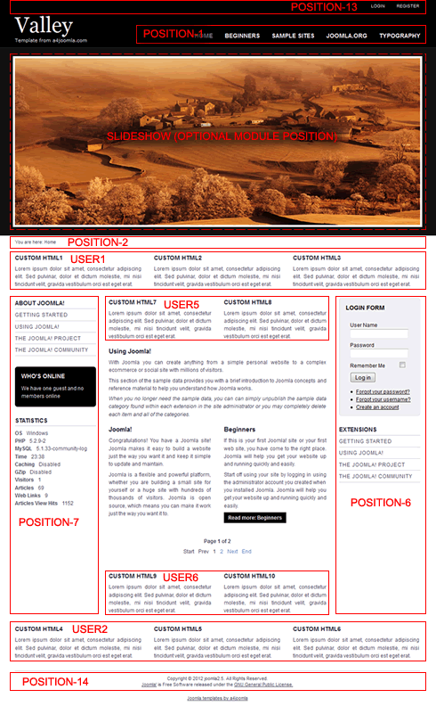 The following module positions exist in this template: