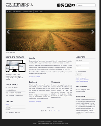 Countryside3R is the responsive version of the Countryside joomla template. The main features of this free joomla template are: