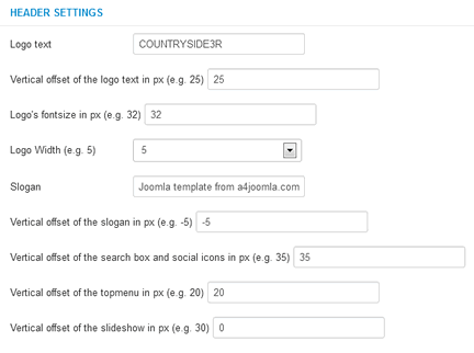 After template installation and choosing it to the default template, click on the template's name in the template manager to set the parameters shown below.
