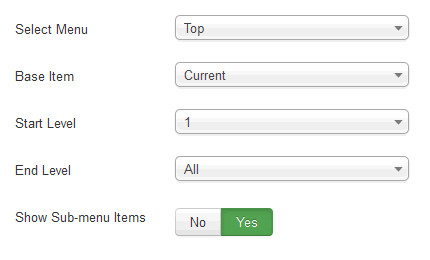 The template has a "position-1" module position for a dropdown menu. This 3-level suckerfish dropdown menu can be set by the following module settings: