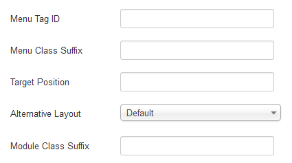The template has a "position-13" module position for a second horizontal menu in the top-right corner e.g. for Login and Registration. This menu can be set by the following module settings: