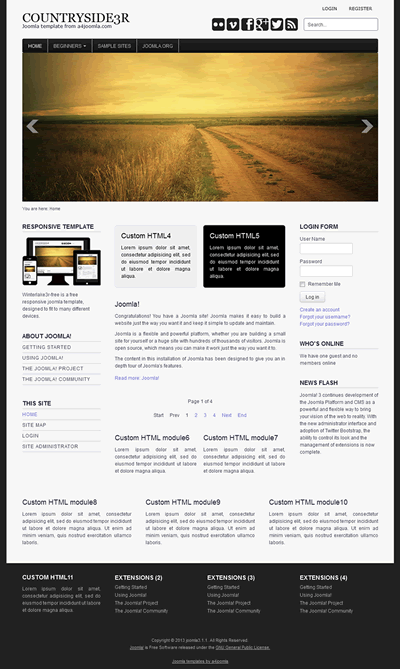 Countryside 3R is the responsive version of the Countryside template. The main features of this joomla template are: