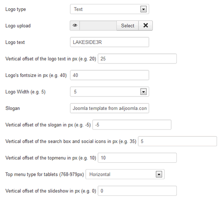 The template uses a 12-column grid, so the Logo width, the Social icons' place width, the Right column width, and the Left column width are the number of columns in the 12 column grid. You may have to play with these settings. Always check how the site looks when you decrease the browser window size, because the template is responsive, and the look of the site changes with the browser (or display) size. For tablet devices you can choose between the mobile topmenu and the horizontal dropdown topmenu. The latter may not be handled well on some tablet devices. But the horizontal menu can also be good for tablets if there are no submenu items.