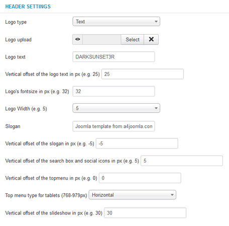 After template installation and choosing it to the default template, click on the template's name in the template manager to set the parameters shown below.