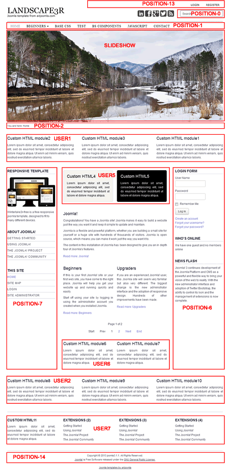 The following module positions exist in this template: