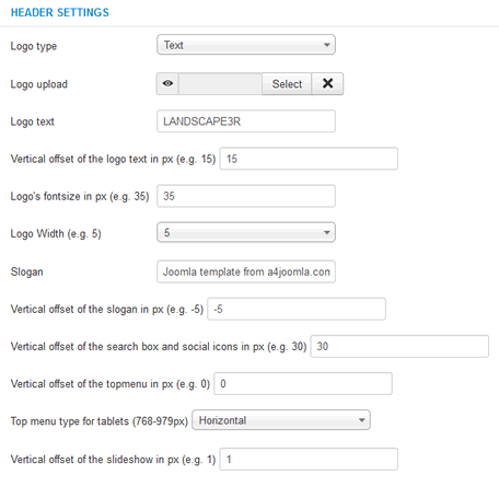 After template installation and choosing it to the default template, click on the template's name in the template manager to set the parameters shown below.